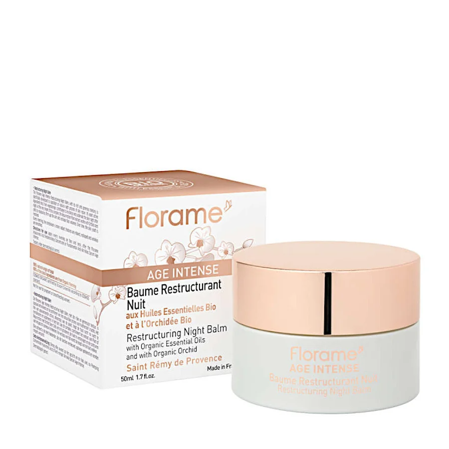 Pour peaux matures, le Baume Restructurant Nuit Florame de la gamme Âge Intense contribue à revitaliser et sublimer la peau pendant la nuit.