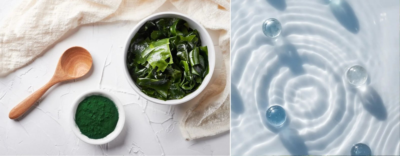 ✔ Shampoings et gels douche : grâce à leurs vertus adoucissantes et réparatrices, les algues marines sont idéales pour prendre soin de notre peau et nos cheveux. Elles offrent une nutrition intense à l'épiderme et aux fibres capillaires en stimulant leur croissance.