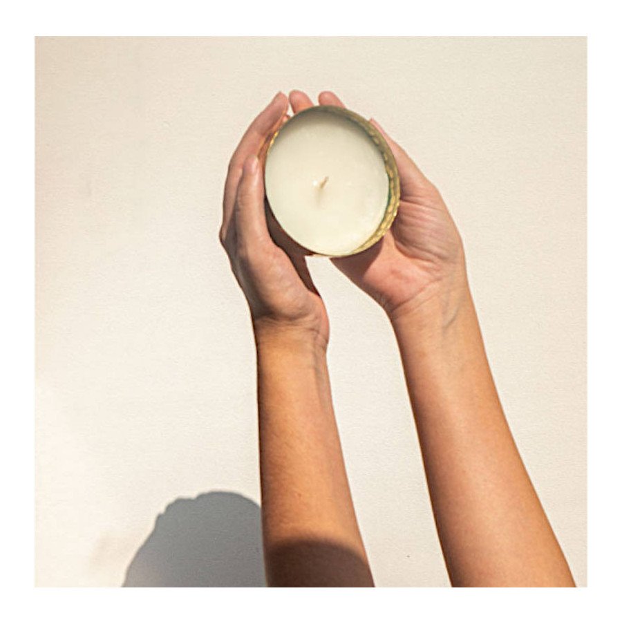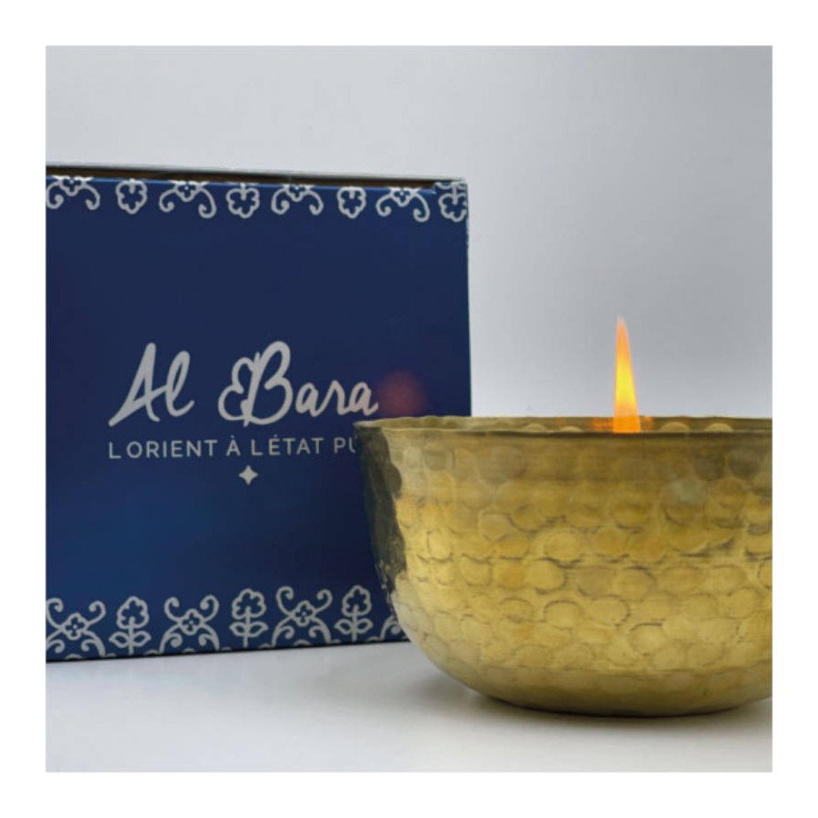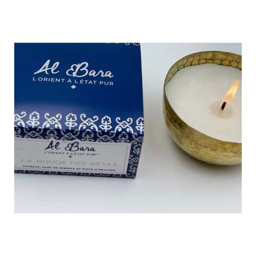 Transformez votre maison en véritable Hammam avec la "Bougie des Rêves" Al-Bara en cire naturelle parfumée au clou de girofle, à la fleur d’oranger et à la cannelle coulée de son bol en cuivre artisanal. Une façon naturelle et raffinée de parfumer votre intérieur façon orientale !