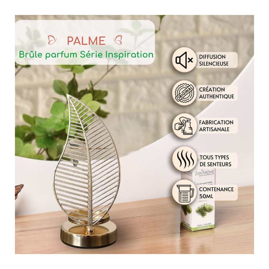 La collection Brûle Parfum Inspiration de Zen Arôme porte son nom avec justesse ! Guidé par le désir de transformer une idée simple en un objet original, fonctionnel et porteur de bien-être, le modèle Palme est une création née avec évidence.