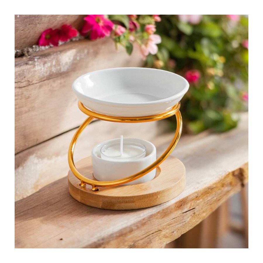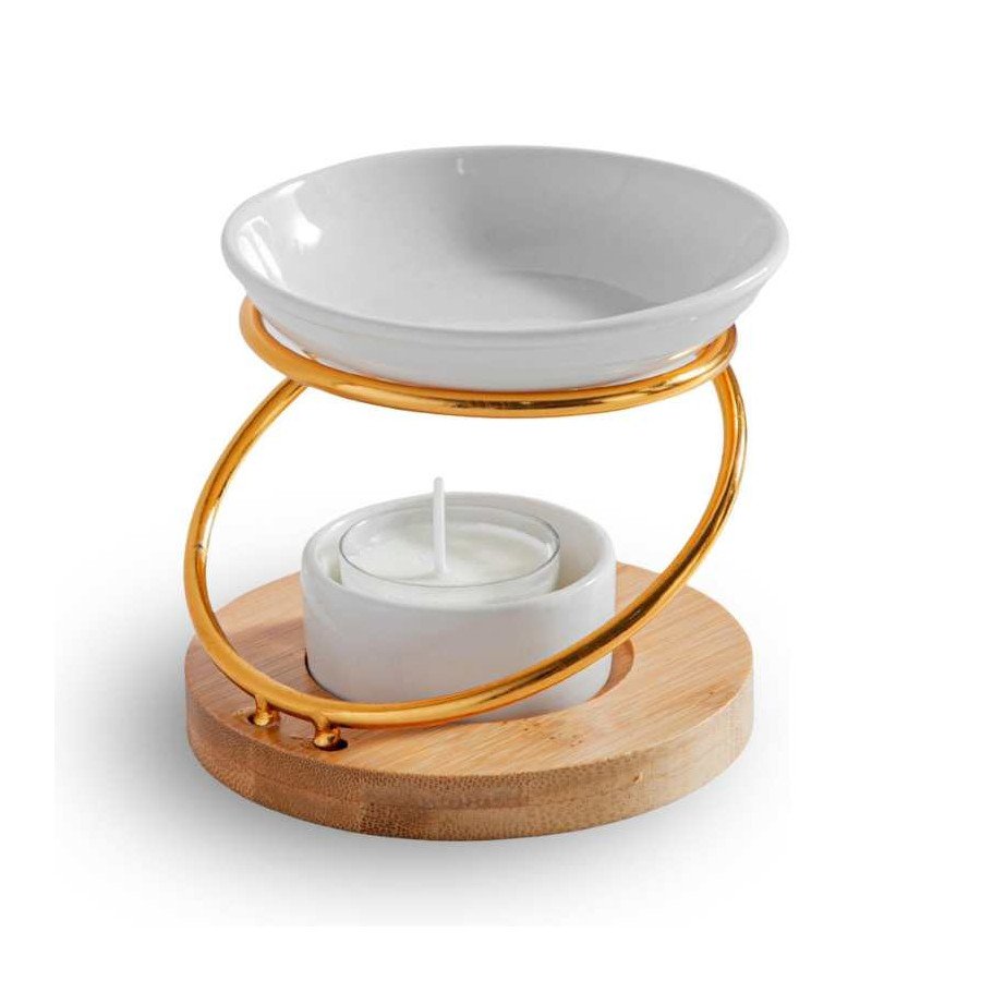 Céramique, métal et bambou, 3 matières qui se marient parfaitement pour un objet à la fois décoratif et adapté à la diffusion des parfums d’ambiance.