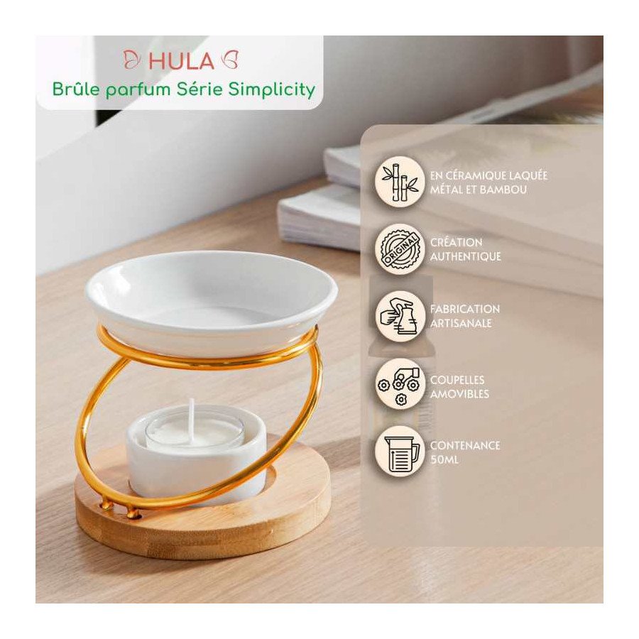 La série Simplicity Brûle Parfum Zen Arôme reprend tous les codes d'un diffuseur de senteurs contemporain aux courbes harmonieuses et généreuses avec des matériaux modernes.