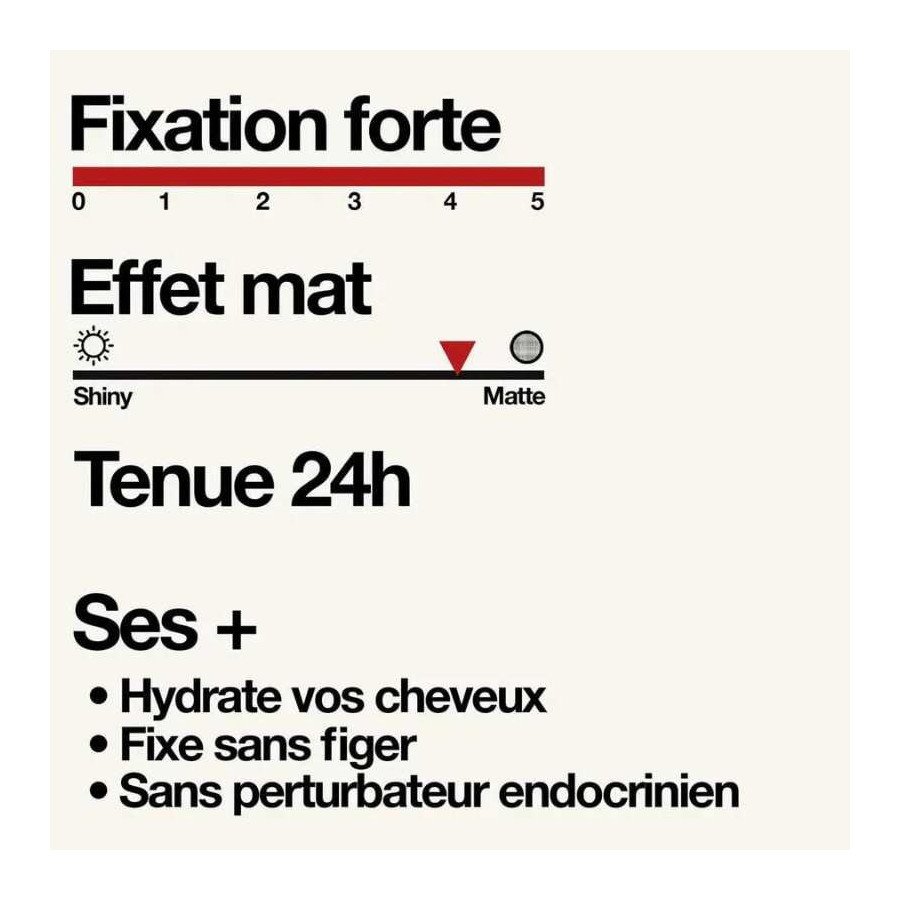 Avec le Cire Coiffante Mate Sapiens, gardez votre coiffure toute la journée. Tout en restant maniable, la fixation forte permet de modeler, fixer sans les figer et texturiser les cheveux à volonté avec un effet mat sans brillance pour un look impeccable.