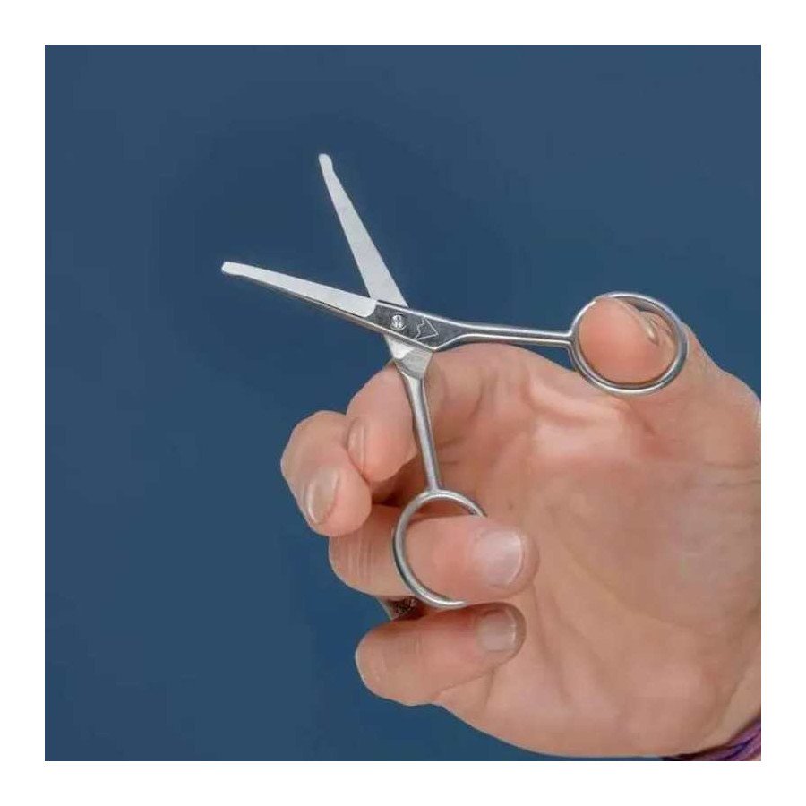 Les bouts du ciseaux sont arrondis pour définir la barbe et la moustache en évitant de se blesser lors de la coupe.