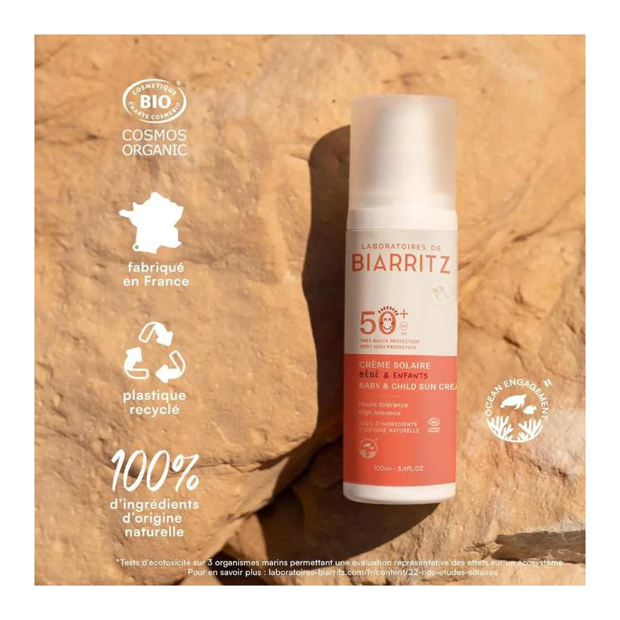 Crème Solaire Bébé Bio SPF 50+ - Laboratoires de Biarritz