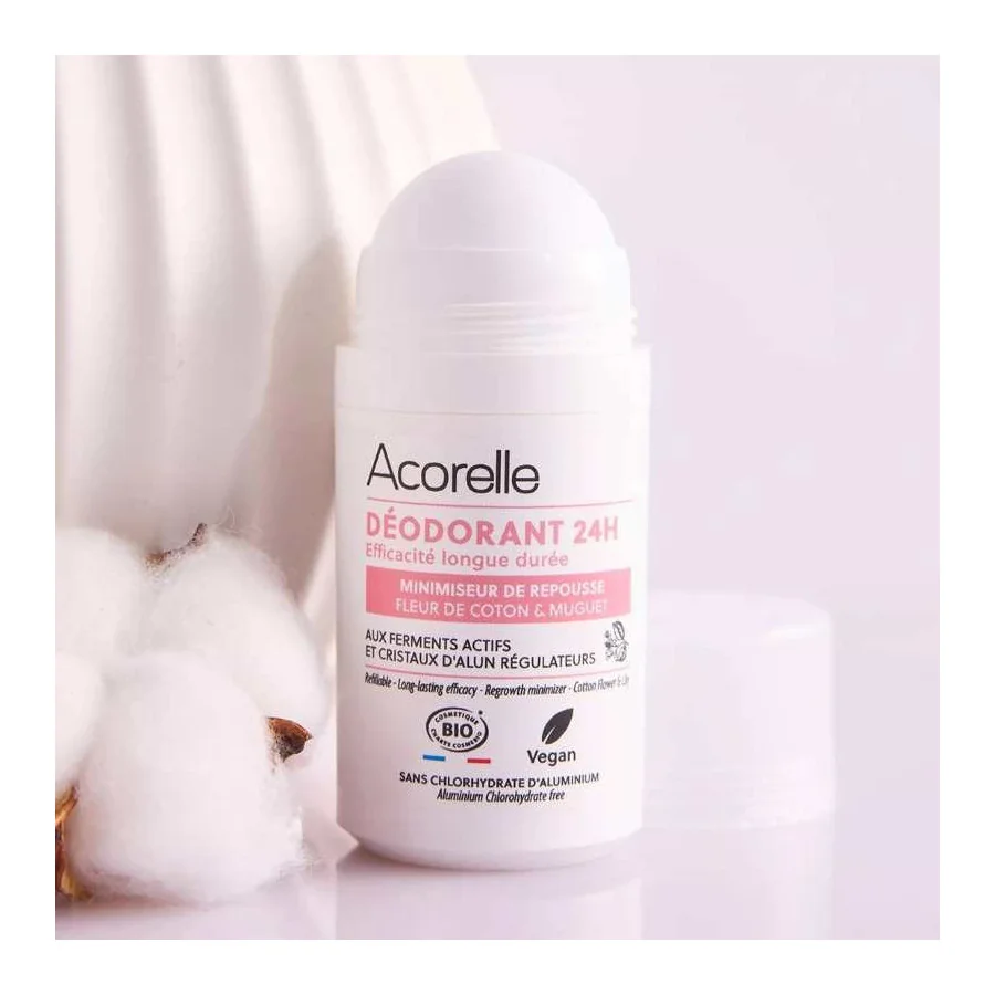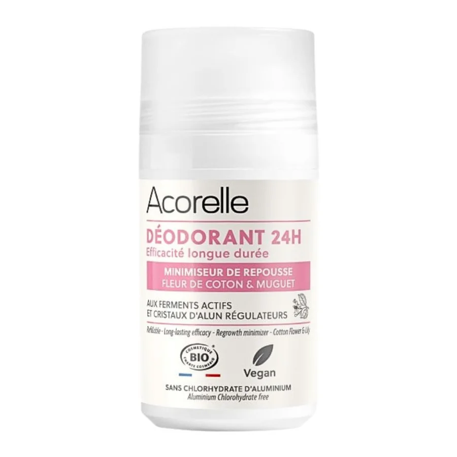 Entre déodorant et anti-repousse, le Déodorant Minimiseur de Repousse Bio Acorelle réduit la pilosité et régule la transpiration par une action ciblée 2-en-1.