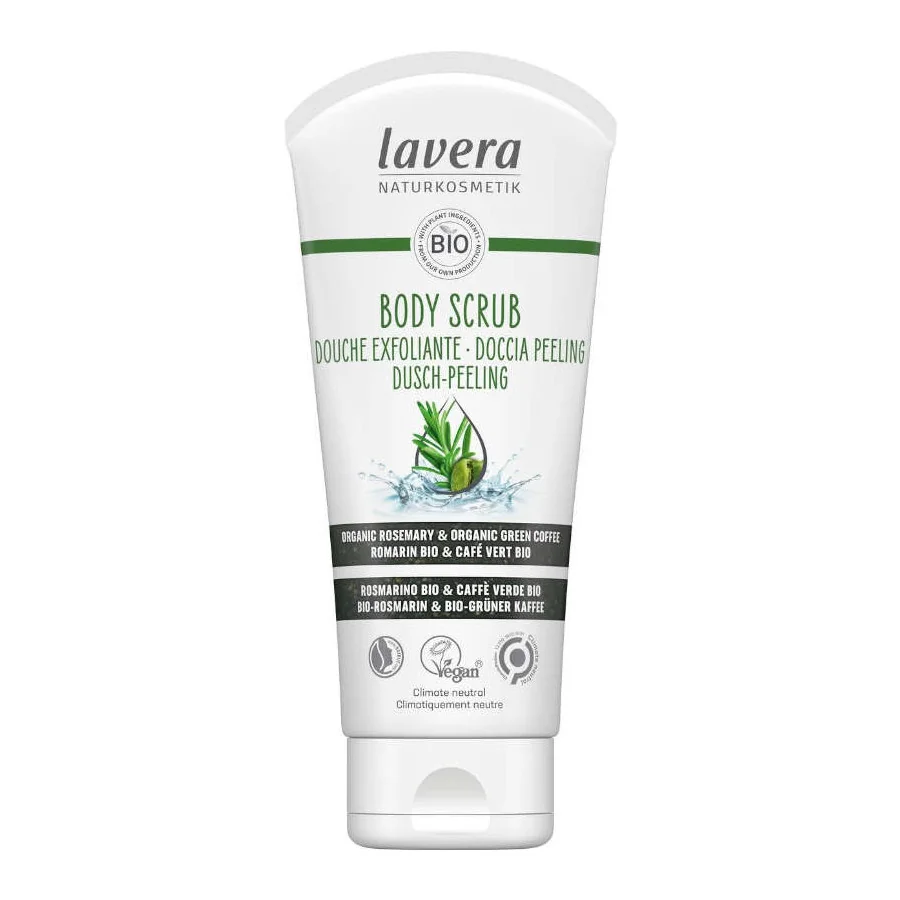 Sa formule enrichie en complexe d'actifs Bio de café vert, de thé vert, de romain et de raisin offre un effet lissant et raffermissant sans dessécher la peau. Complété par une action drainante et exfoliante, le gel douche Lavera exfolie et stimule la circulation sanguine pour une peau encore plus belle !