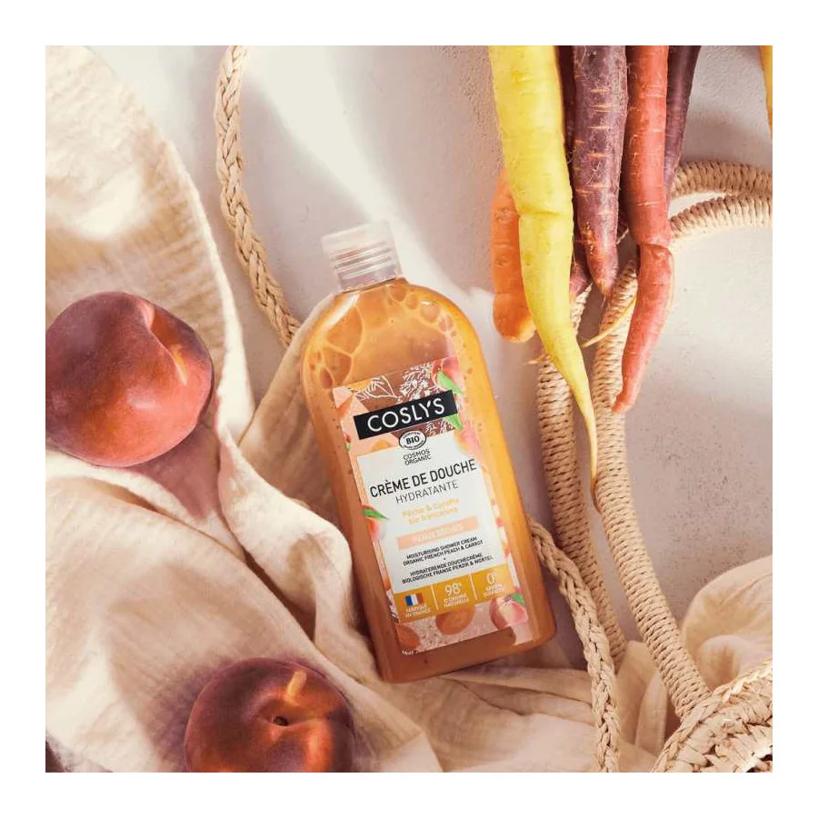 Avec la Crème de Douche Hydratante Pêche-Carotte Bio Coslys, dites adieu à la routine ennuyeuse et bonjour à une explosion de fraîcheur fruitée et vitaminée !