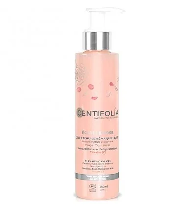 La Gelée d'Huile Démaquillante Bio Éclat de Rose Centifolia démaquille et nettoie en douceur la peau grâce à sa synergie d'ingrédients naturels comme la rose centifolia, l'acide hyaluronique et la vitamine C. Cette gelée démaquillante élimine le maquillage longue tenue ainsi que les impuretés accumulées pendant la journée.