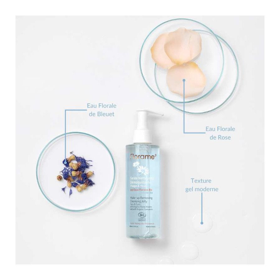 La gelée nettoyante démaquillante Florame est un produit cosmétique biologique et écologique labellisé COSMOS ORGANIC certifié par Ecocert Greenlife selon le référentiel COSMOS
