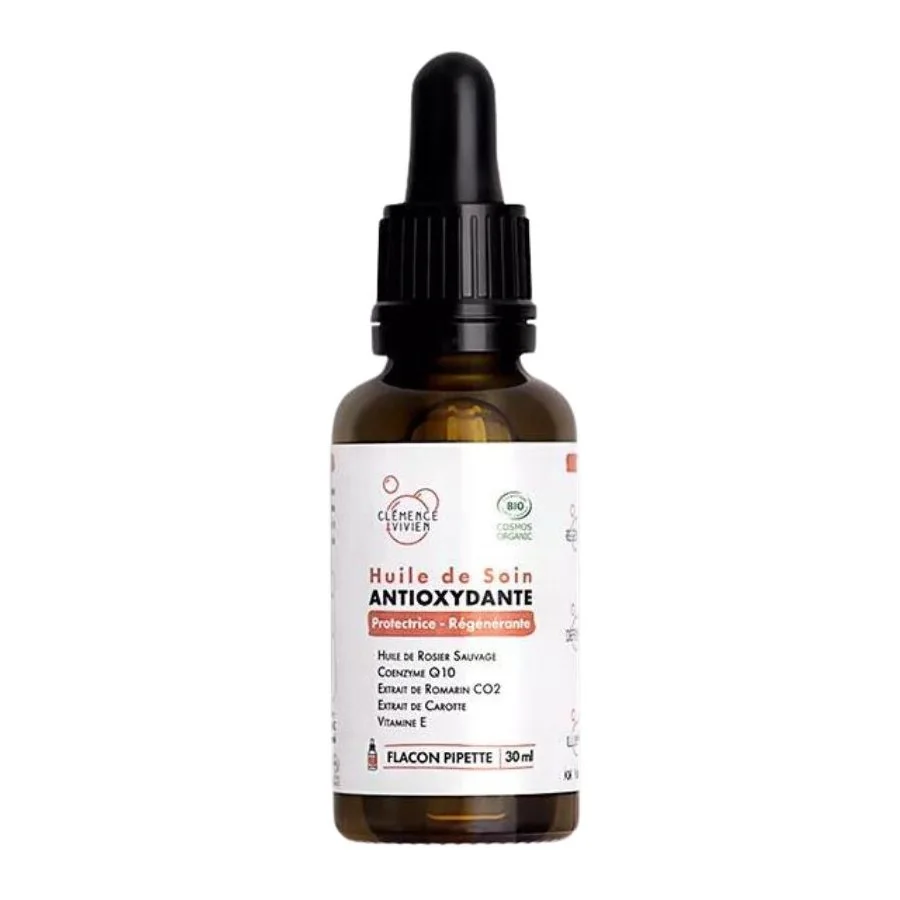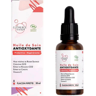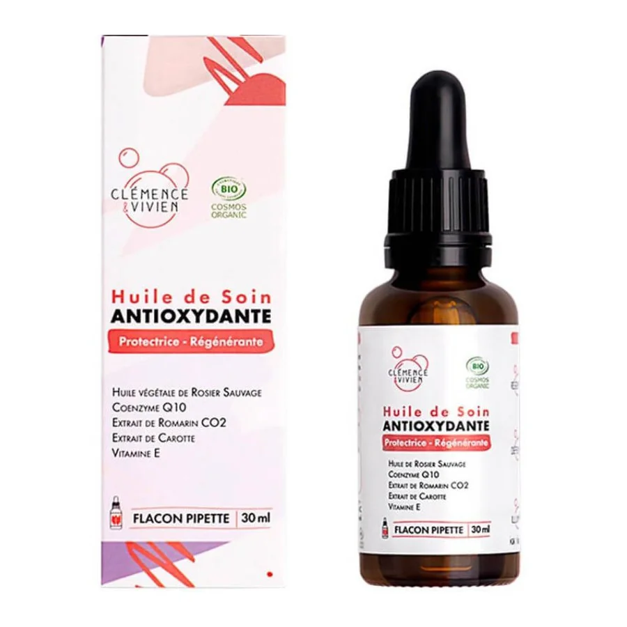 Pour lutte contre les radicaux libres qui endommagent la structure cellulaire de l'épiderme, l'Huile de Soin Antioxydante Clémence & Vivien est formulée d'un cocktail d’huiles végétales avec principalement l'huile de rose musquée régénérante et réparatrice, riche en acides gras essentiels pour prévenir l’apparition des rides.