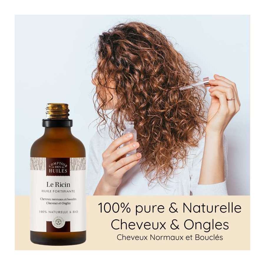 Redonner force à vos cheveux en favorisant leur croissance ainsi qu'à vos cils et vos ongles avec l’Huile de Ricin Comptoir des Huiles !