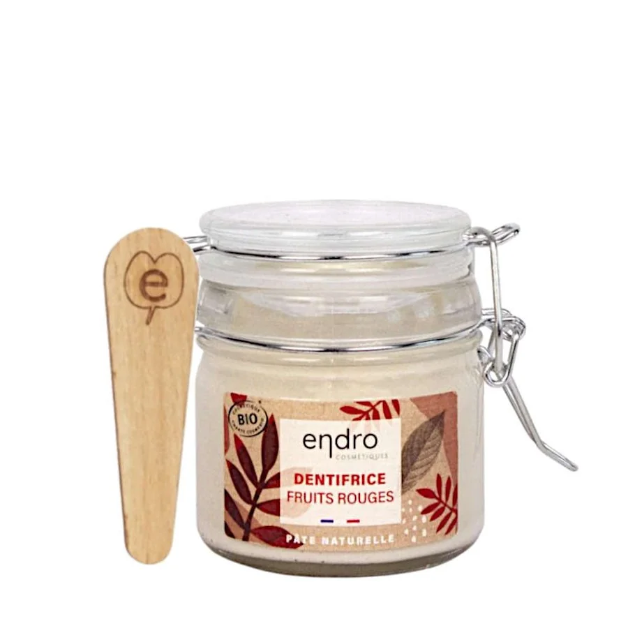 Sous forme de pâte, le dentifrice solide fruits rouges Endro est une vraie gourmandise pour les grands comme les enfants. Il apporte une solution à tous ceux qui souhaitent faire la transition vers un dentifrice naturel et zéro déchet sans avoir réussi à s’adapter à un dentifrice solide.