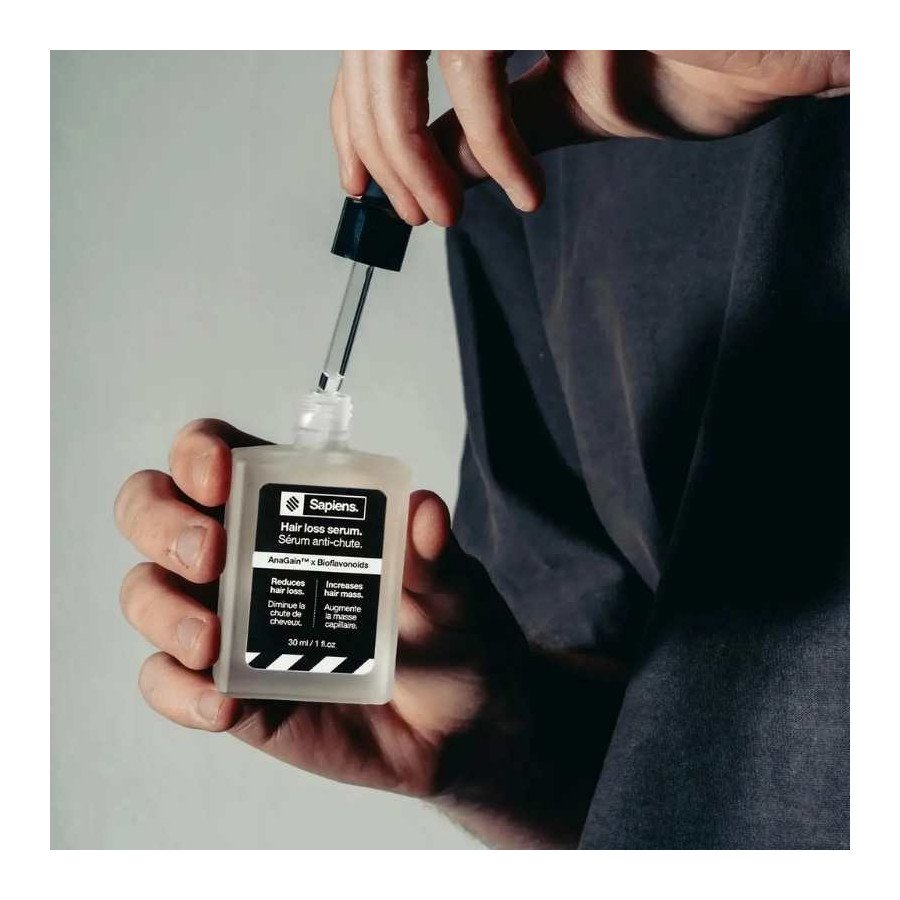 Le Sérum Anti-Chute Cheveux Sapiens est un concentré de 4 actifs d'origine naturels pour ralentir et freiner la chute des cheveux des hommes, quelle soit ponctuelle ou progressive. Le sérum agit directement à la racine pour relancer naturellement la pousse et renforcer durablement la fibre capillaire.